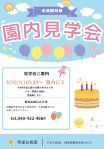 明星幼稚園では9/30(火)に、令和8年度入園のお子様対象に園内見学を実施致します! ご希望の方は...