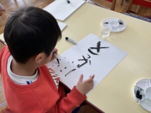 1/15(木)は、年長組さんが❛書初め❜を行いました🖌
