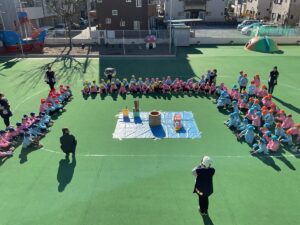 園庭に全クラス集合です✨全員で体操を一つ踊り、軽く