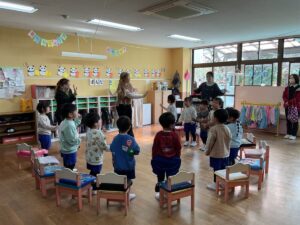 お店屋さんの持ち物を聞いたら、その後各教室に移動!