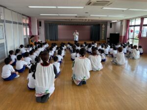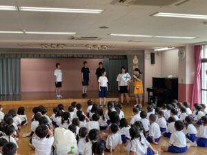 9/1は防災の日ということで始業式の後に先生たちの防災の劇を見ました。