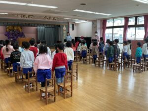 真面目な雰囲気のなか年中組も真剣な眼差しで