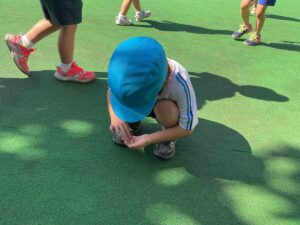 園庭に落ちている小石や葉っぱなどのごみ拾いをしました!