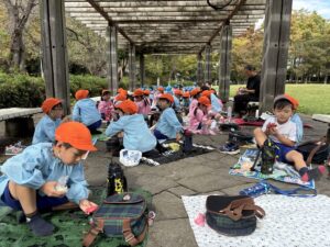 年中組さんも公園でおにぎり🍙を食べて、どんぐりも拾いました🌰