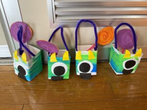 自分たちで作った変身グッズとカゴも持ってきました♡