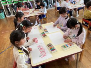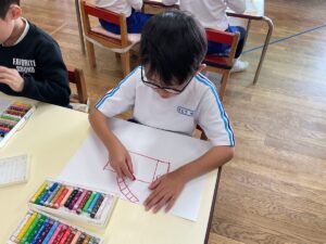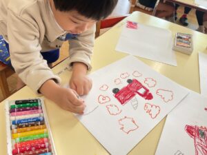 帰ってきてからは消防署見学の絵を書きましたよ✍️