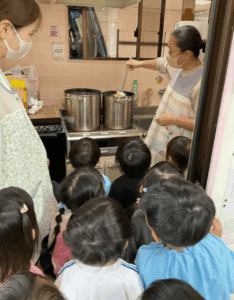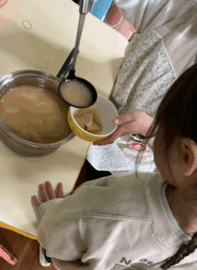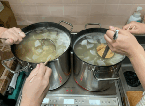 お鍋で煮込んでいる所が皆気になるようで台所に見に来て